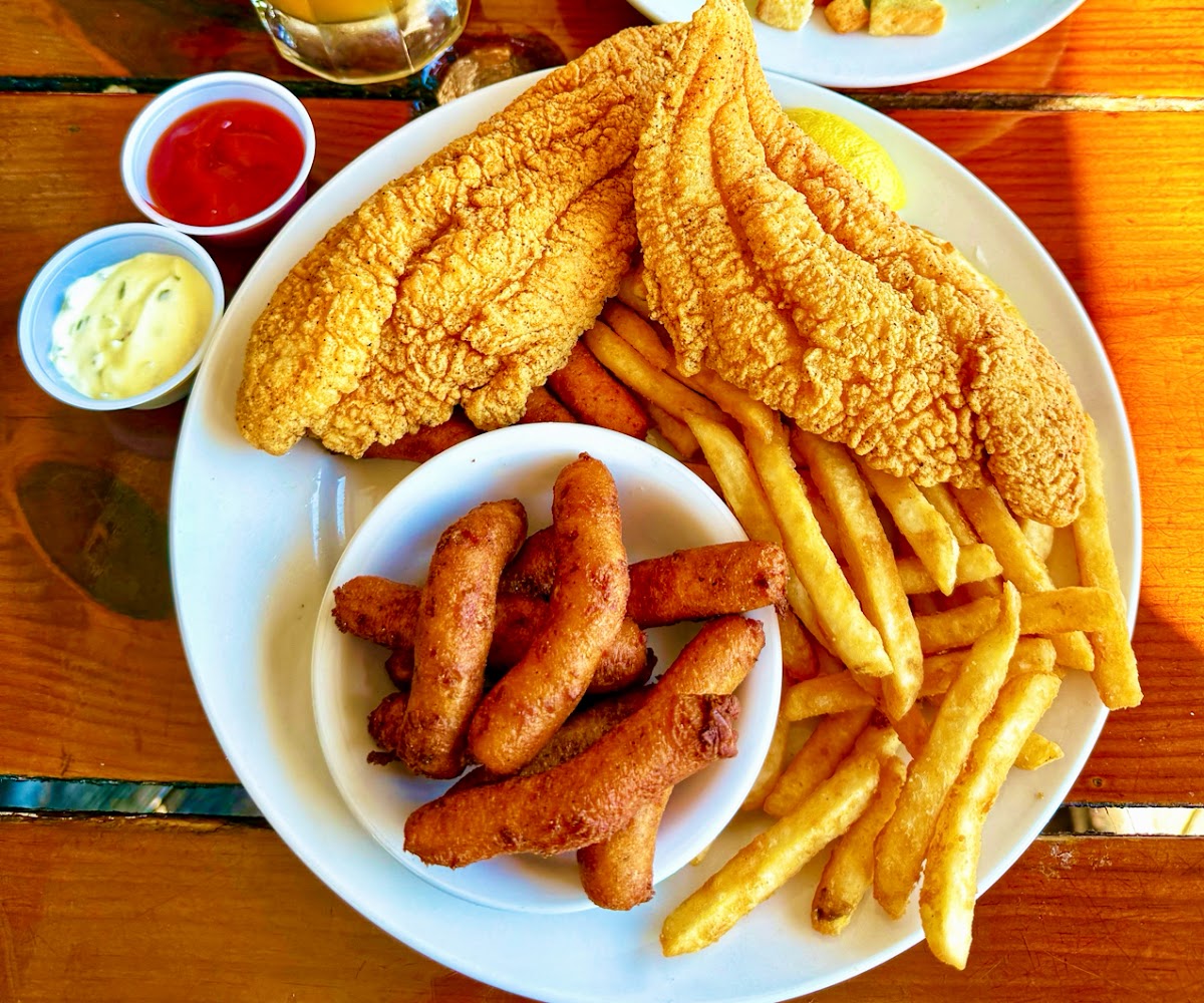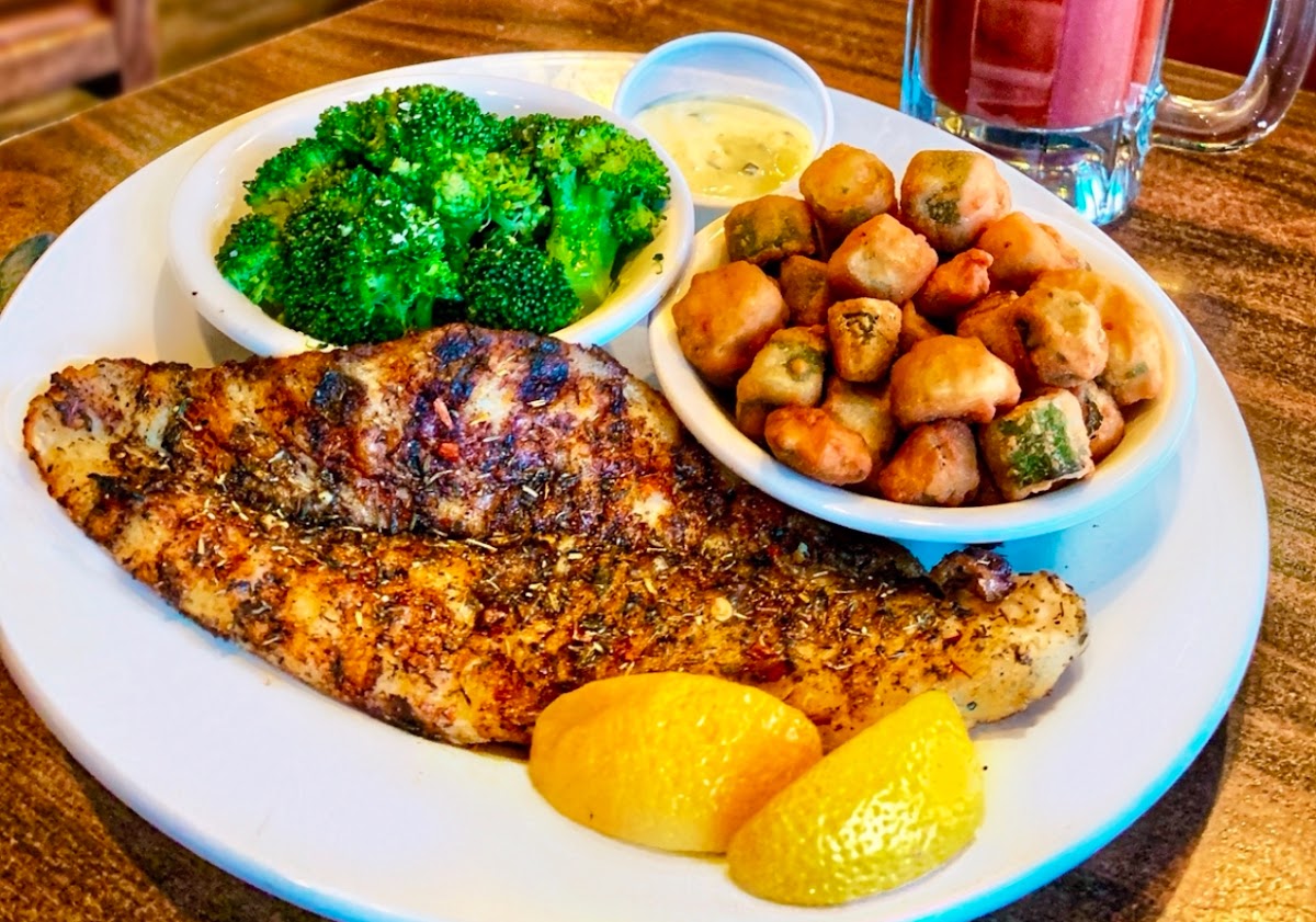 The steaks were done too perfection. Cooked to our exact specifications. The catfish was absolutely delicious. The appetizers were very delicious. I highly recommend the trio. Get any 3. We chose fried okra, mozzarella sticks and fried zucchini. My son and I also shared a dozen oysters, but sorry, no picks. My boy devoured them before I could get a good picture...lol. Your family will love the food here. I've been bringing them here for years and we are never disappointed. Enjoy everyone.